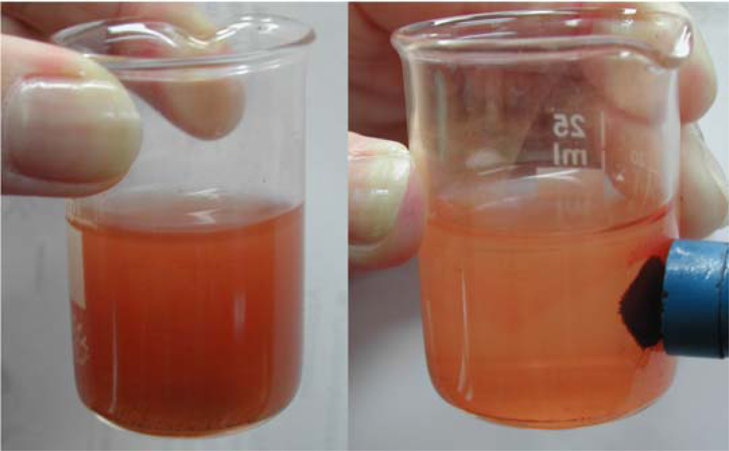 Magnetic properties illustration of Fe2O3 nanoparticles dispersed in water.