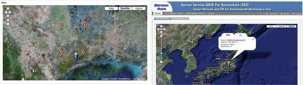 The primary work of the SSG implementation at the central server is the collection of data from all SOS Stations around the world, the management of all such stations, and the dissemination of information collected through the Internet. One of the main features of Sensor Asia is user-friendly data visualization.