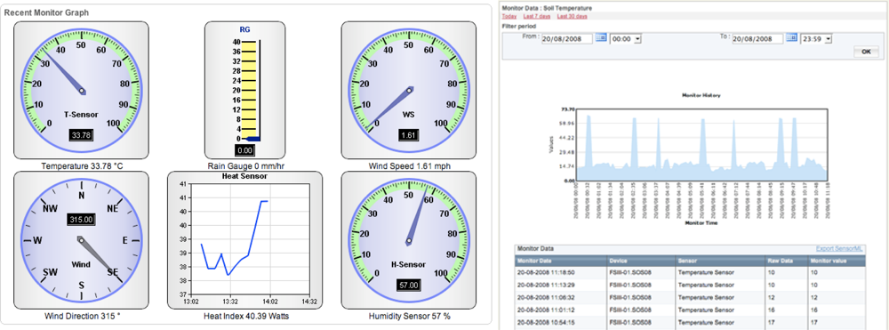 The data being received from the SOS Station can easily be viewed in real-time in the form of simple dials and graphs as show in Figure 6. Sensor configuration setup automatically creates this visual interface.