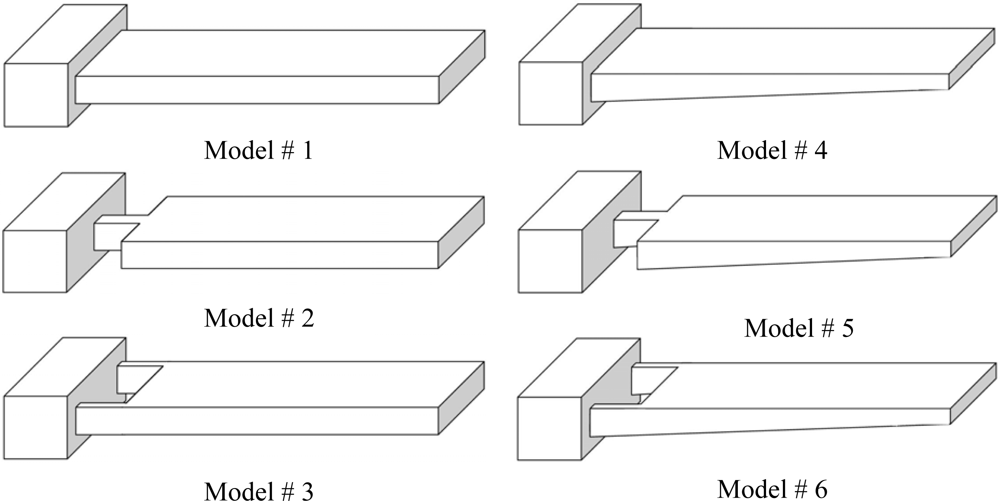 Schematic designs for the rectangular and trapezoidal profile cantilevers. All the models have same length and fixed-end thickness.