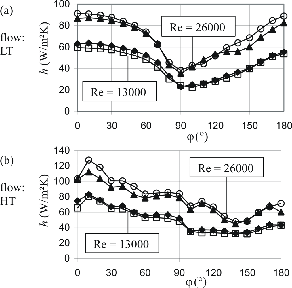 - (26HT) for Re = 26,000 and high turbulence
