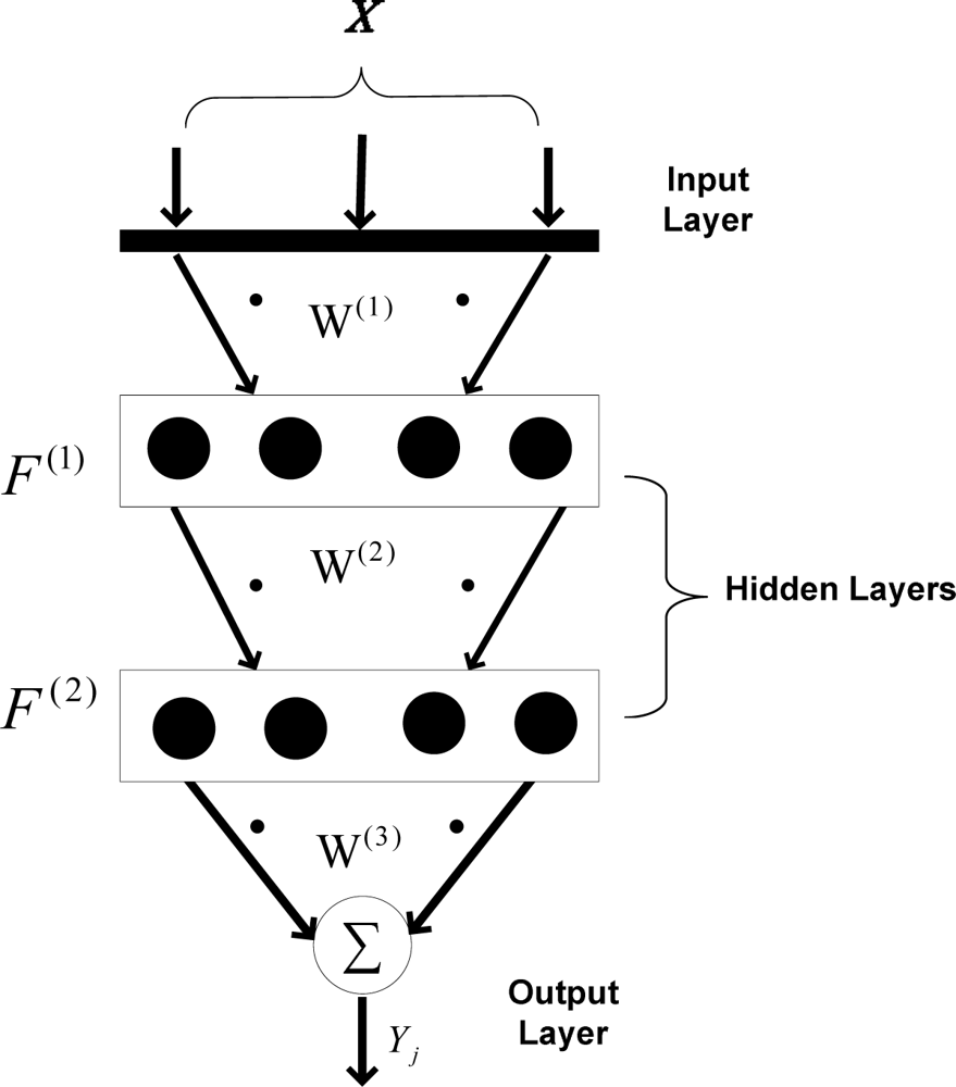 denotes the weights between the first and second hidden layers.