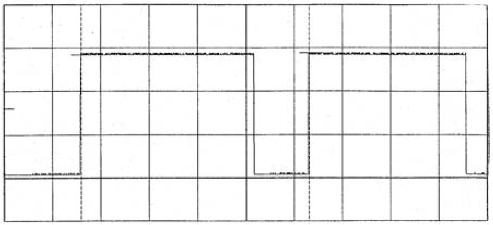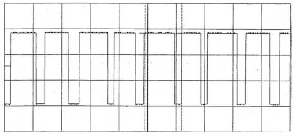 Several tests have been run with the aim of obtaining a comparative study for the designed system and the GPI commercial flowmeter. Different shape signals can be seen in Figures 6-a, 6-b, 6-c, 6-d and 6-e, corresponding to specific tests. The generated pulse train and the frequency value appear in each graph.