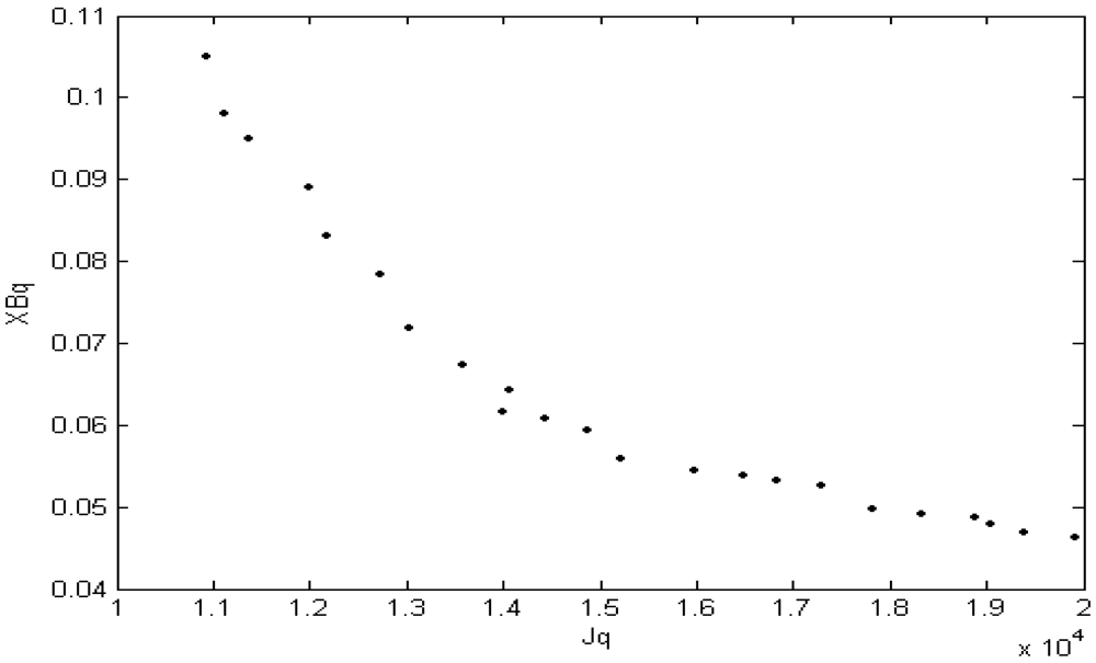 and the cluster membership values are recomputed. Note that the XBq index is a combination of global (numerator) and particular (denominator) situations. The numerator is similar to Jm but the denominator has a factor that gives the separation between to minimum distant clusters. Hence this factor only considers the worst case, i.e. which two clusters are closest to each other and forgets about the other partitions. Here, greater value of the denominator (lower value of whole index) signifies a better partitioning. Thus it is evident that Jq and XBq indices should be simultaneously minimized in order to get good solutions. The two terms at the numerator and the denominator of XBq may not attain their best values for the same partitioning when the data has complex and overlapping clusters, such as remote sensing image and micro-array data. Figure 1 shows, just for the sake of illustration, the final Pareto-optimal front (composed of non-dominated solutions) of one of the runs of the MODE algorithm for the artificial dataset_3 (described in the next section), to demonstrate the contradictory nature of Jq and XB indices.