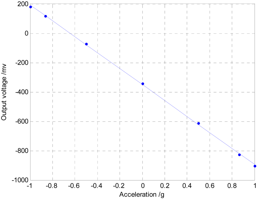 Figure 13 shows the least-square linear fitting curve of the output voltage and corresponding acceleration, and the linear equation is as follows: