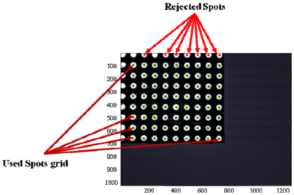- as third step, all images are processed off-line to compute the centroids of imaged spots and the average centroid;