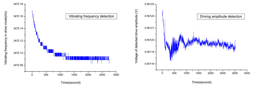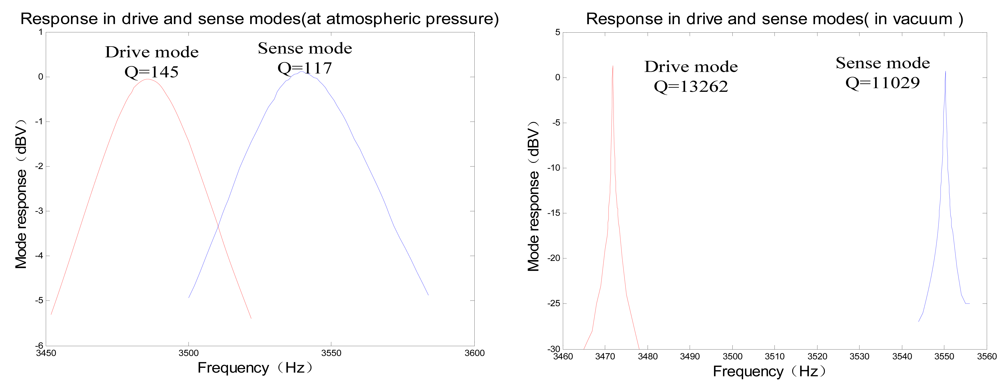 - Because the vibratory amplitude in sense mode is in direct proportion to the outer angular rate, the gyroscope can detect the corresponding angular rate through detecting the vibratory amplitude.