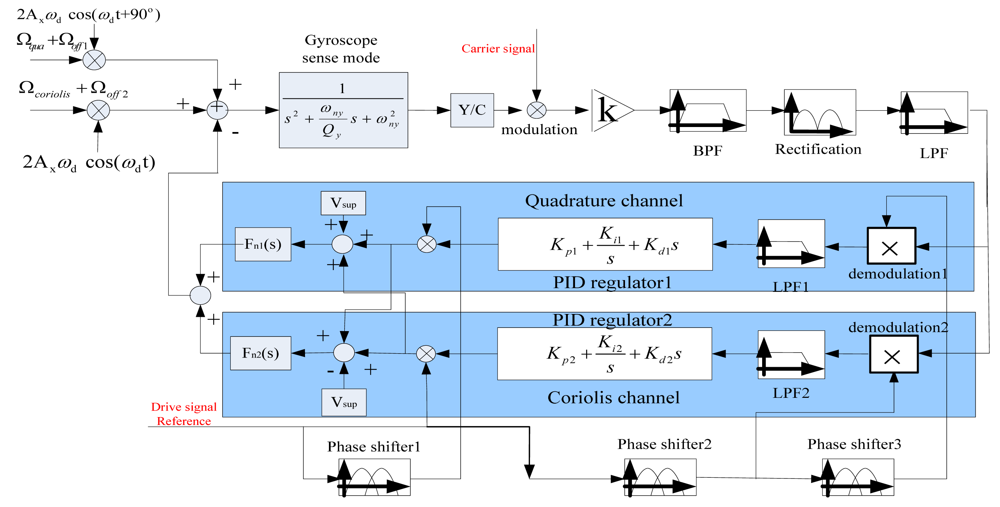 - Chang, B.S.; Kim, S.; Lee, J.G.; Kang, D.T.; Sung, W. Design and performance analysis of PLL based self oscillation loop in vibrating gyroscope. Proceedings of SPIE, San Jose, CA, USA, February 2005; pp. 1–6.