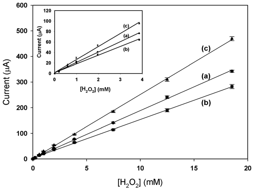 - Liu, Y.G.; Xu, Q.; Feng, X.M.; Zhu, J.J.; Hou, W.H. Immobilization of hemoglobin on SBA-15 applied to the electrocatalytic reduction of H2O2. Anal. Bioanal.Chem. 2007, 387, 1553–1559. [Google Scholar]