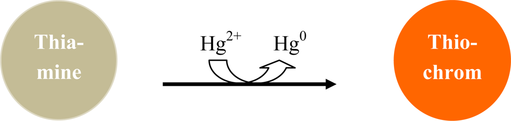 Ionic mercury reacts with thiamine to generate a “turn-on” fluorescence signal when thiochrome is formed.