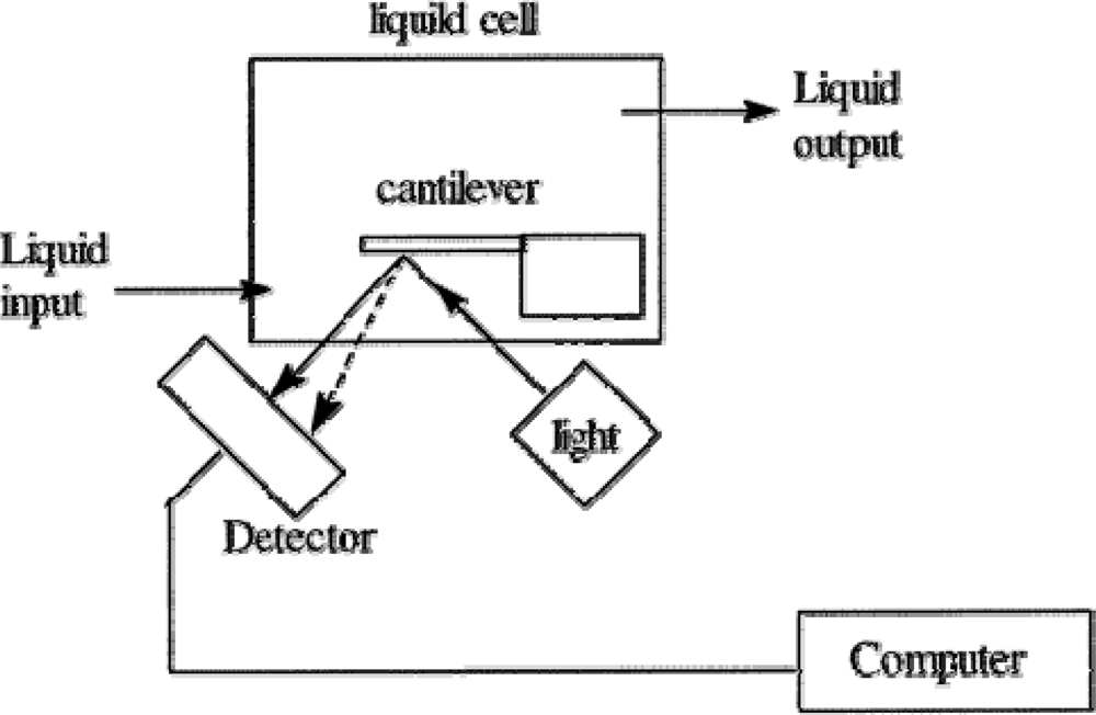 Schematic diagram of a microcantilever sensor system. Reprinted with permission from [42]. Copyright American Chemical Society (2002).