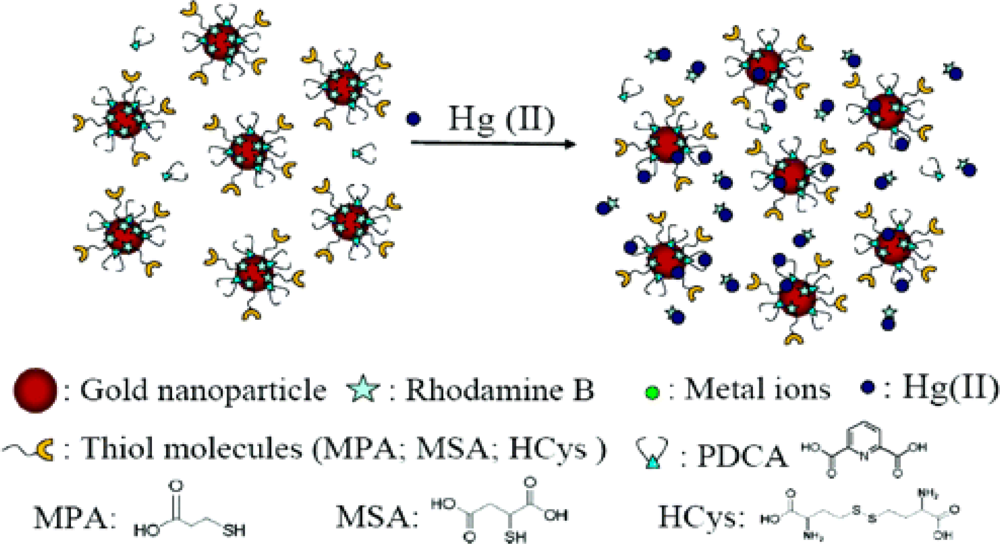 Rhodamine B-AuNP mercury sensor modified by thiol ligands and PDCA. Reprinted with permission from [8]. Copyright American Chemical Society (2006).