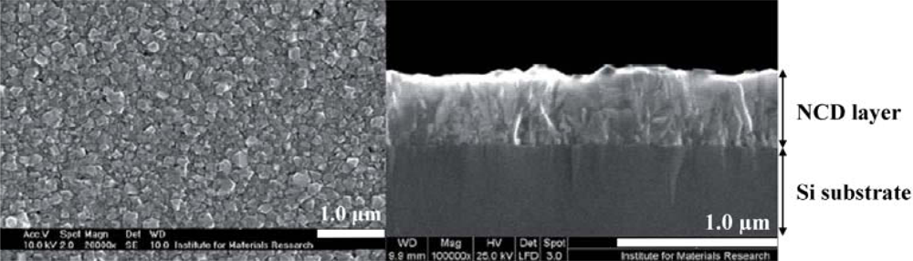 - Williams, O.A.; Nesládek, M. Growth and properties of nanocrystalline diamond films. Phys. Stat. Sol 2006, 203, 3375–3386. [Google Scholar]