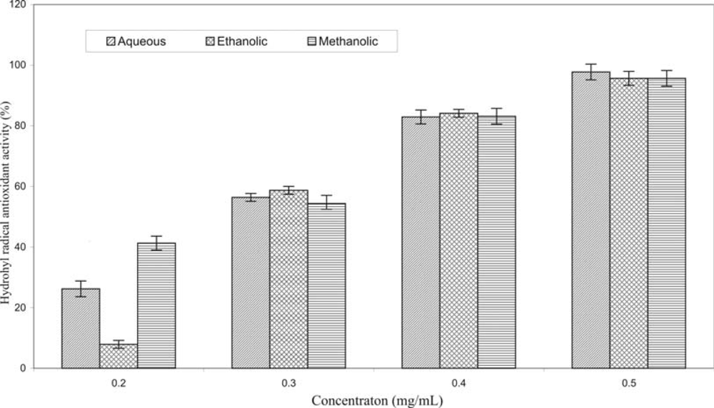 | Ethanolic | 49.10 ± 1.20 | 21.60 ± 1.52 | 0.72 ± 0.15 | 0.31 ± 0.05 | 0.58 ± 0.03 | 0.250 ± 0.04 |
