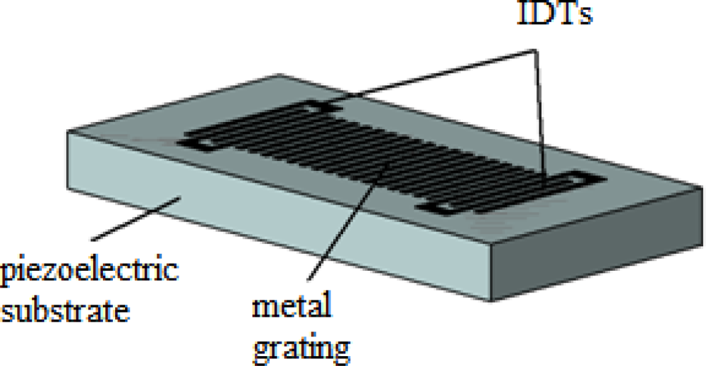 The SSBW was first described by Milson et al. [] and Lewis [] in 1977, but its advantageous qualities have turned out to be largely discredited by a substantial loss from radiation into the bulk of the substrate. It was not until 1987, when Bagwell and Bray [] proposed a two-port resonator with an unloaded high quality factor (Q) of 5,600 in which the SSBW power was trapped to the surface via the effect of a metal strip grating.