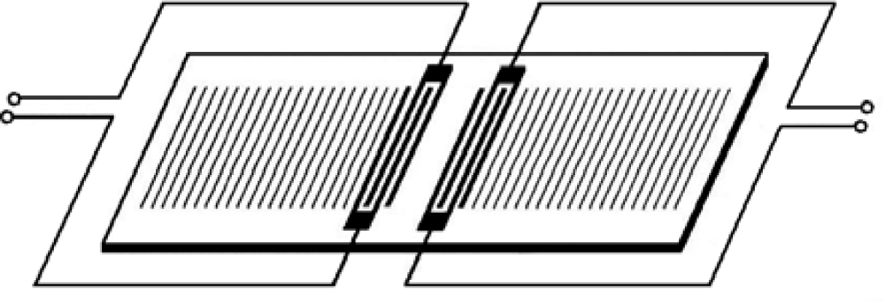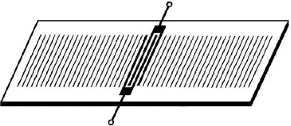 IDTs were firstly reported in 1965 by White and Voltmer [] for generating SAWs in a piezoelectric substrate. An IDT, in its most simple version, is formed by two identical combs-like metal electrodes whose fingers are located in a periodic alternating pattern (see Figure 2). One comb is connected to the shield (ground) and the other to the center conductor of a coaxial cable where a radio frequency (rf) signal is provided.