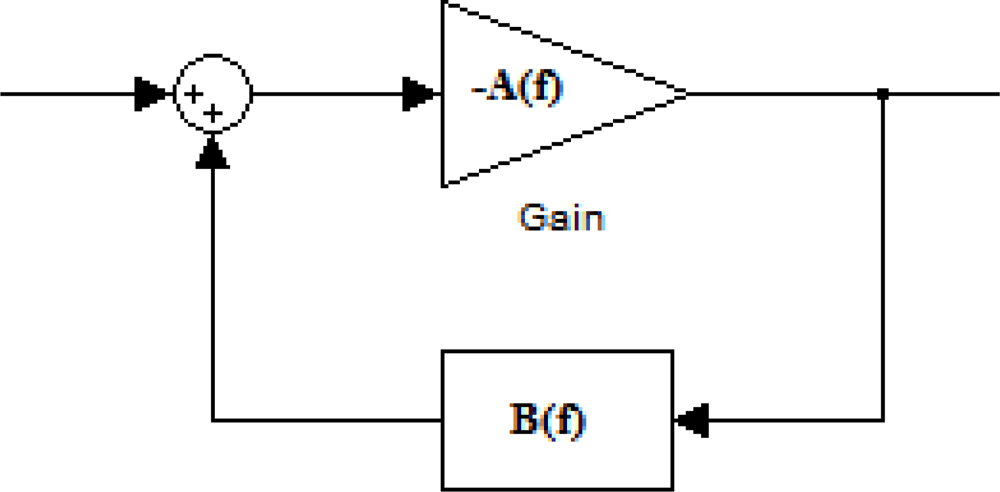 The oscillator circuit places a two-port delay line SGAW piezoelectric device in the feedback loop of an rf amplifier (see B(f) in Figure 9). The condition for the oscillation is A(f)·B(f) = −1, from which |A(f)|·|B(f)| = 1 is found for the loop gain and for the loop phase arg A(f)·B(f) = −2πn, where n is an integer [].