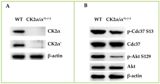 On the other hand, it is remarkable that even two well established bona fide CK2 phosphosites, pS13 of CDC37 and pS129 of AKT, often used as reliable reporters of endogenous CK2 activity, do not disappear, as one would expect, in CK2 null cells, the former being only modestly reduced (Figure 3). This means that other kinases can partially replace CK2 to ensure the phosphorylation of crucial residues that are normally targeted by this kinase.