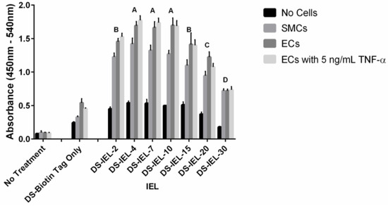 Figure 3). There was no difference in binding to unstimulated ECs or ECs stimulated with TNF-α for any EC-SEAL variant, which is consistent with the selectin expression data discussed previously. Although nearly all variants had a higher binding affinity to ECs, they also adhered to SMCs, presumably through P-selectin. Prior studies on IDL and IEL peptides indeed indicated binding to both E and P-selectin [