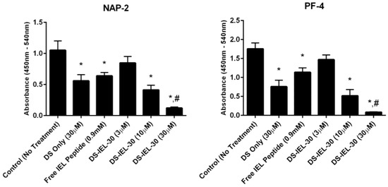 30 proved to be an extremely effective dose even when compared to equivalent amounts of its individual components (30 µM DS Only and 0.9 mM Free IEL Peptide). We believe that the apparent discrepancy between the binding studies (where DS-IEL