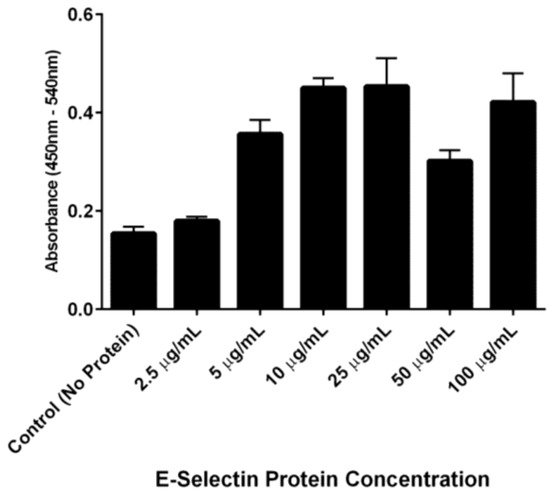 51]. It is also possible that the concentration of E-selectin protein coated on the plate’s surface influences the orientation in which the protein adsorbs and therefore, the exposure (or lack thereof) of ligand binding sites. Given that DS-IEL