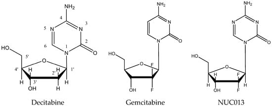 Comparison of the structures of decitabine, gemcitabine and NUC013.