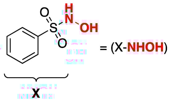 - Seel, F.B.C. Mechanism of the decomposition of sodium benzenesulfohydroxamate in aqueous solution. Z. Anorg. Allg. Chem. 1972, 394, 187–196. [Google Scholar] [CrossRef]