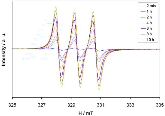 - Mordvintcev, P.; Mülsch, A.; Busse, R.; Vanin, A. On-line detection of nitric oxide formation in liquid aqueous phase by electron paramagnetic resonance spectroscopy. Anal. Biochem. 1991, 199, 142–146. [Google Scholar] [CrossRef]