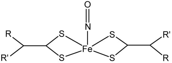 - Xia, Y.; Cardounel, A.J.; Vanin, A.F.; Zweier, J.L. Electron paramagnetic resonance spectroscopy with N-methyl-d-glucamine dithiocarbamate iron complexes distinguishes nitric oxide and nitroxyl anion in a redoxdependent manner: Applications in identifying nitrogen monoxide products from nitric oxide synthase. Free Radic. Biol. Med. 2000, 29, 793–797. [Google Scholar] [PubMed]