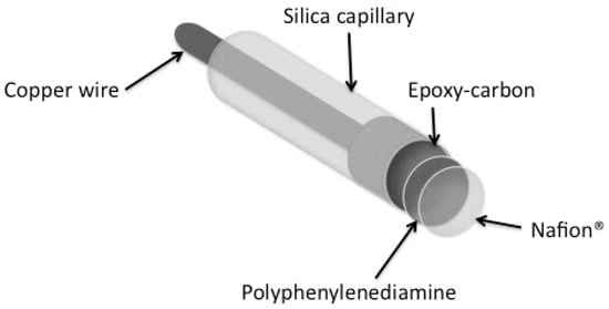 - Friedemann, M.N.; Robinson, S.W.; Gerhardt, G.A. O-phenylenediamine-modified carbon fiber electrodes for the detection of nitric oxide. Anal. Chem. 1996, 68, 2621–2628. [Google Scholar] [CrossRef] [PubMed]