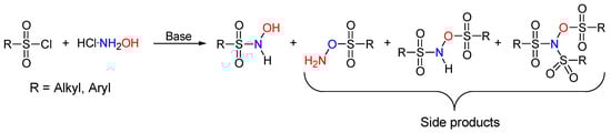 - Piloty, O. Ueber eine oxydation des hydroxylamins durch benzolsulfochlorid. Eur. J. Inorg. Chem. 1896, 29, 1559–1567. [Google Scholar] [CrossRef]