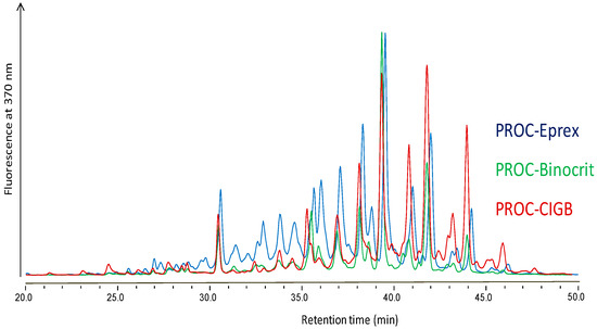 Liquid chromatography (LC) analysis of procainamide (PROC) labelled N-glycans contained in Eprex, Binocrit and CIGB-EPO.