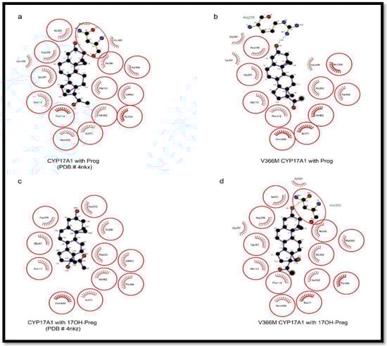 Structural modifications based on the above information may help in designing more specific and potent inhibitors directed only towards the 17,20 lyase activity of CYP17A1 that could produce tighter binding at the active site. The 17,20 lyase-specific inhibitors will have advantages over current compounds that target both the 17α-hydroxylase and the 17,20 lyase activities of CYP17A1 and require steroid supplementation [12,54,55,56,57,58]. The mechanistic and structural insights revealed by these studies will help in the development of better drugs against polycystic ovary syndrome and prostate cancer. These findings will also improve our understanding of the structural basis of the dual function of CYP17A1 as both a 17α-hydroxylase and 17,20 lyase, and the role of these activities in the regulation of steroid hormone production in different tissues.