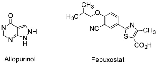 - Lien, Y.-H.H.; Logan, J.L. Cross-reactions between allopurinol and febuxostat. Am. J. Med. 2017, 130, e67–e68. [Google Scholar] [CrossRef] [PubMed]