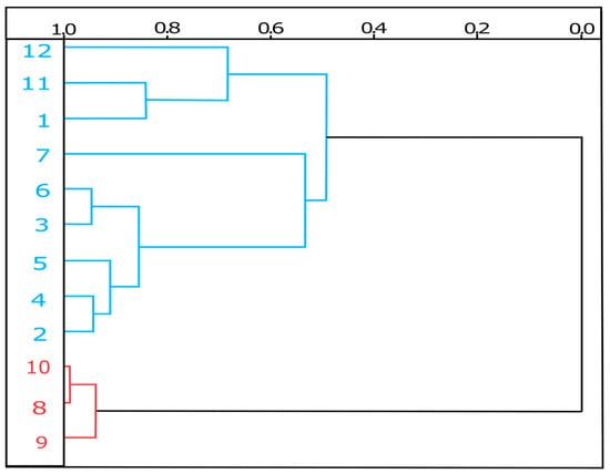 In the HCA technique, the distances between a pair of samples are computed and compared. Small distances imply that the compounds are similar, while non-similar samples will be separated by relatively large distances. The scale of similarity ranges from 0 for samples with no similarity to 1 for samples with great similarity. The dendrogram in Figure 5 shows that the HCA results confirmed the PCA analysis.