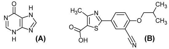 Control Ligands 2D structure: (A) hypoxanthine (HPX) and (B) Febuxostat (FBX).