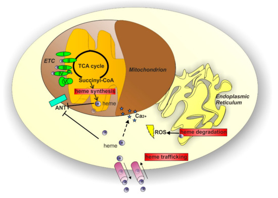 In endothelial cells, it has been demonstrated that alterations in heme metabolism, in addition to promoting lipid peroxidation and activation of autophagy, induce mitophagy and apoptosis, indicating mitochondrial dysfunction [155]. Similarly, FLVCR1 loss is associated with alterations in mitochondrial morphology in human microvascular endothelial cells [26].