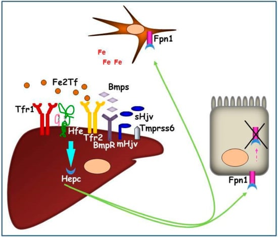 1.2. Systemic Iron Metabolism: The Hepc-Fpn1 Axis and the Proteins Involved in Hepc Regulation