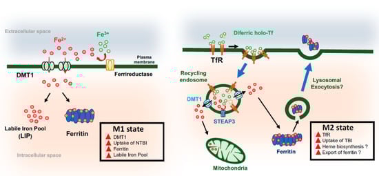 - Duck, K.A.; Connor, J.R. Iron uptake and transport across physiological barriers. Biometals 2016, 29, 573–591. [Google Scholar] [CrossRef] [PubMed]
