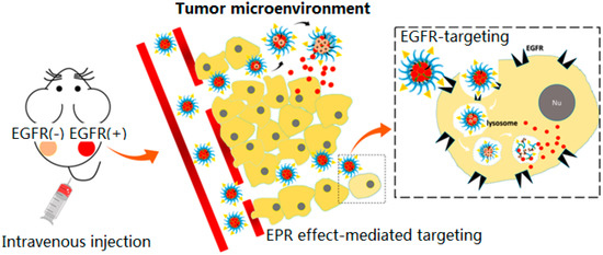 - Li, Y.; Du, Y.; Liang, X.; Sun, T.; Xue, H.; Tian, J.; Jin, Z. Egfr-targeted liposomal nanohybrid cerasomes: Theranostic function and immune checkpoint inhibition in a mouse model of colorectal cancer. Nanoscale 2018, 10, 16738–16749. [Google Scholar] [CrossRef] [PubMed]