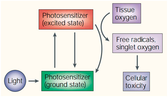 Mechanism of action of photodynamic therapy (PDT). Reproduced with permission from [8].