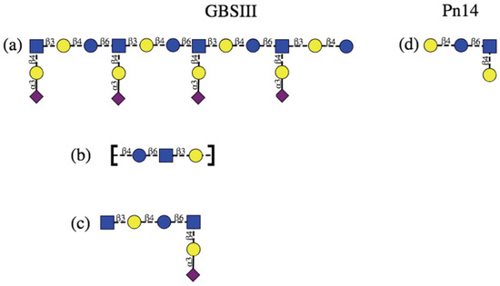 - Kadirvelraj, R.; González-Outeiriño, J.; Foley, L.; Beckham, M.L.; Jennings, H.J.; Foote, S.; Ford, M.G.; Woods, R.J. Understanding the bacterial polysaccharide antigenicity of Streptococcus agalactiae versus Streptococcus pneumoniae. Proc. Natl. Acad. Sci. USA 2006, 103, 8149–8154. [Google Scholar] [CrossRef] [PubMed]