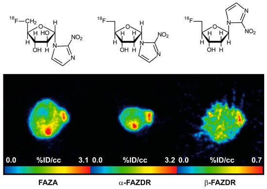 - Schweifer, A.; Maier, F.C.; Ehrlichmann, W.; Lamparter, D.; Kneilling, M.; Pichler, B.J.; Hammerschmidt, F.; Reischl, G. [18F]Fluoro-azomycin-2-deoxy-beta-d-ribofuranoside—A new imaging agent for tumor hypoxia in comparison with [18F]FAZA. Nucl. Med. Biol. 2016, 43, 759–769. [Google Scholar] [CrossRef] [PubMed]