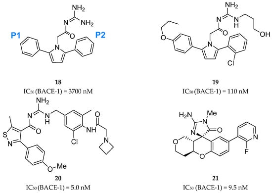 - Cole, D.C.; Manas, E.S.; Stock, J.R.; Condon, J.S.; Jennings, L.D.; Aulabaugh, A.; Chopra, R.; Cowling, R.; Ellingboe, J.W.; Fan, K.Y.; et al. Acylguanidines as small-molecule β-secretase inhibitors. J. Med. Chem. 2006, 49, 6158–6161. [Google Scholar] [CrossRef] [PubMed]