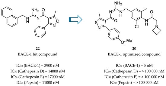 APP mutations close to the β-cleavage site that increase the efficiency of β-cleavage and result in overproduction of Aβ peptides strongly influence the risk of AD []. On the other and, a mutation adjacent to the β-cleavage site that reduces the formation of amyloidogenic peptides has a strong protective effect against AD []. Considering this genetic information, the inhibition of APP proteolysis by BACE-1 to lower the concentration of neurotoxic Aβ peptides became a rational strategy for clinical intervention.