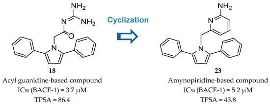 - Gerritz, S.W.; Zhai, W.; Shi, S.; Zhu, S.; Toyn, J.H.; Meredith, J.E.; Iben, L.G.; Burton, C.R.; Albright, C.F.; Good, A.C.; et al. Acyl guanidine inhibitors of β-secretase (BACE-1): Optimization of a micromolar hit to a nanomolar lead via iterative solid- and solution-phase library synthesis. J. Med. Chem. 2012, 55, 9208–9223. [Google Scholar] [CrossRef]