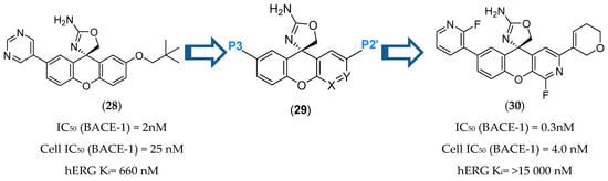 - Epstein, O.; Bryan, M.C.; Cheng, A.C.; Derakhchan, K.; Dineen, T.A.; Hickman, D.; Hua, Z.; Human, J.B.; Kreiman, C.; Marx, I.E.; et al. Lead optimization and modulation of hERG activity in a series of aminooxazoline xanthene β-site amyloid precursor protein cleaving enzyme (BACE1) inhibitors. J. Med. Chem. 2014, 57, 9796–9810. [Google Scholar] [CrossRef]