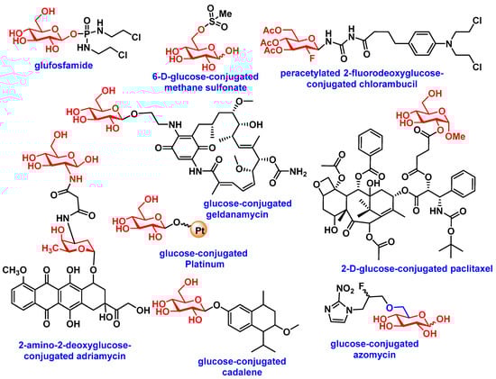 - Calvaresi, E.C.; Hergenrother, P.J. Glucose Conjugation for the Specific Targeting and Treatment of Cancer. Chem. Sci. 2013, 4, 2319–2333. [Google Scholar] [CrossRef] [PubMed]