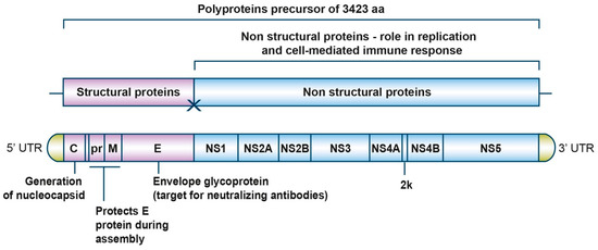 - Lindenbach, B.D.; Rice, C.M. Molecular biology of flaviviruses. Adv. Virus Res. 2003, 59, 23–61. [Google Scholar]