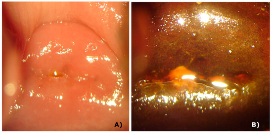 Although some countries indicate only the follow-up of the patient without performing any procedure as a standard procedure, if the physician wants to perform some procedure, she/he has only the option of conization. Among the side effects of this procedure, there is the loss of cervical integrity, increasing the possibility of premature birth, the closure of cervical canal making menstruation impossible, and increasing the possibility of a carcinoma and infections [20,21]. On the other hand, photodynamic therapy has a great tissue repair rate and the cervix maintains its anatomical and mechanical characteristics, without clinical alteration of function and physiology. Figure 5 shows the integrity of the cervix of a patient after 2 years and 9 months of PDT procedures and it is clear there is no damage of the tissue. After the colposcopy, the same cervix without lesions is clearly shown in this figure. Some patients got pregnant during the follow-up, showing the integrity of the cervix.